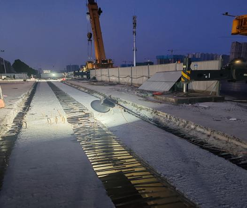 9月14日凌晨5:30,由城發(fā)投集團所屬市政集團市政工程公司承建的勝利大街跨裕華路舊橋拼寬工程T型梁全部吊裝完成,工程將轉(zhuǎn)入橋面施工和附屬結(jié)構(gòu)施工階段。 勝利大街跨裕華路舊橋拼寬工程,拼橋段頂升長度為83米,其中31.939米T型梁1跨,25.42米T型梁2跨,橋面寬度33.5米,總體頂升重量達2074噸。 該拼寬工程將兩座獨立的并行橋梁結(jié)構(gòu)連通并加強,利用兩幅橋間2.25米寬空隙進行拼寬處理,實現(xiàn)了增加一個機動車道的交通功能。市政集團科學組織、精心調(diào)度,多次召開專題會議并進行施工技術和安全交底,在橋下狹小的空間內(nèi),將分幅蓋梁連通成整幅蓋梁,形成支撐上部結(jié)構(gòu)荷載的大橫梁,在大橫梁上架設T型梁,攻克了本次工程的最大難點。 下一步,市政集團將進一步加強施工組織,細化施工工藝,做到舊橋改造提升內(nèi)實外美,確保按照既定時間節(jié)點高質(zhì)高效完成建設任務!